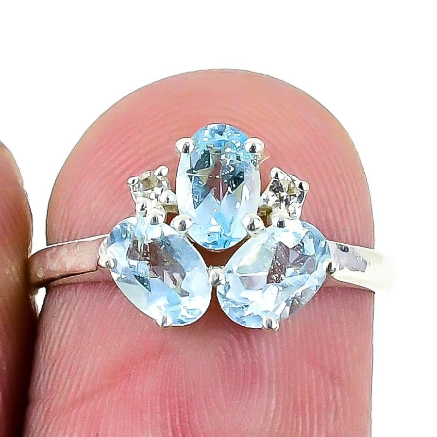 Natural Swiss Blue Topaz Sterling Silver Sisters Day Statement Ring Jewelry US 6