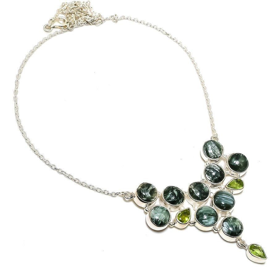 Natural Seraphinite Boho Wife Chain Best Sisters Gift Necklace 925�Solid�Silver