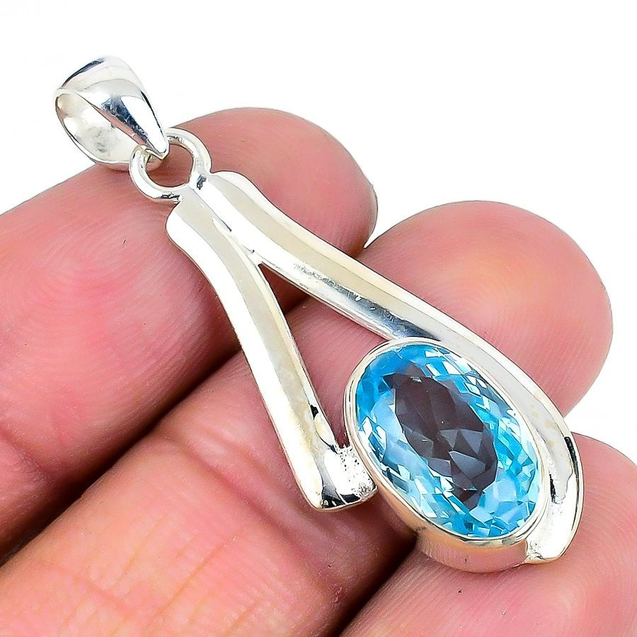 Natural Swiss Blue Topaz 925 Silver Birthday Artisan Friend Gift Elegant Pendant