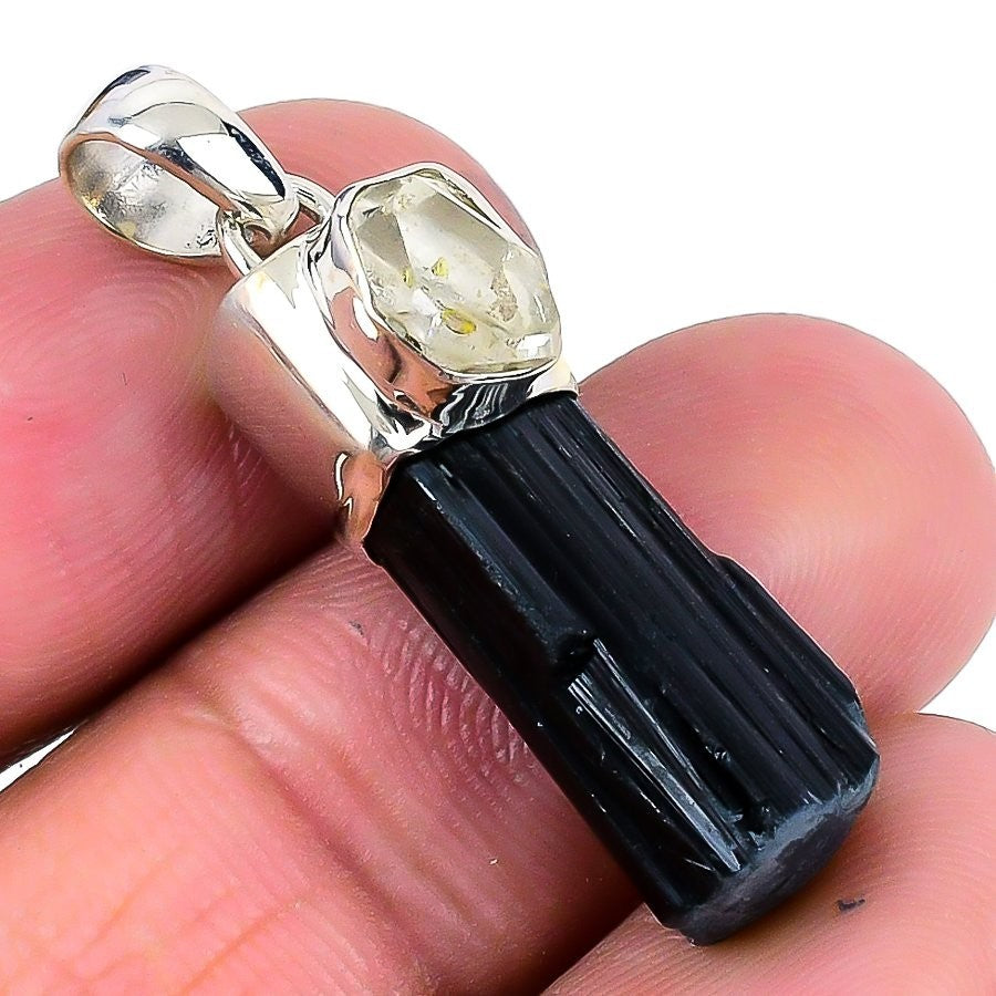 Black Tourmaline Stone 925�Solid�Silver Engagement Birthday Anniversary Pendant