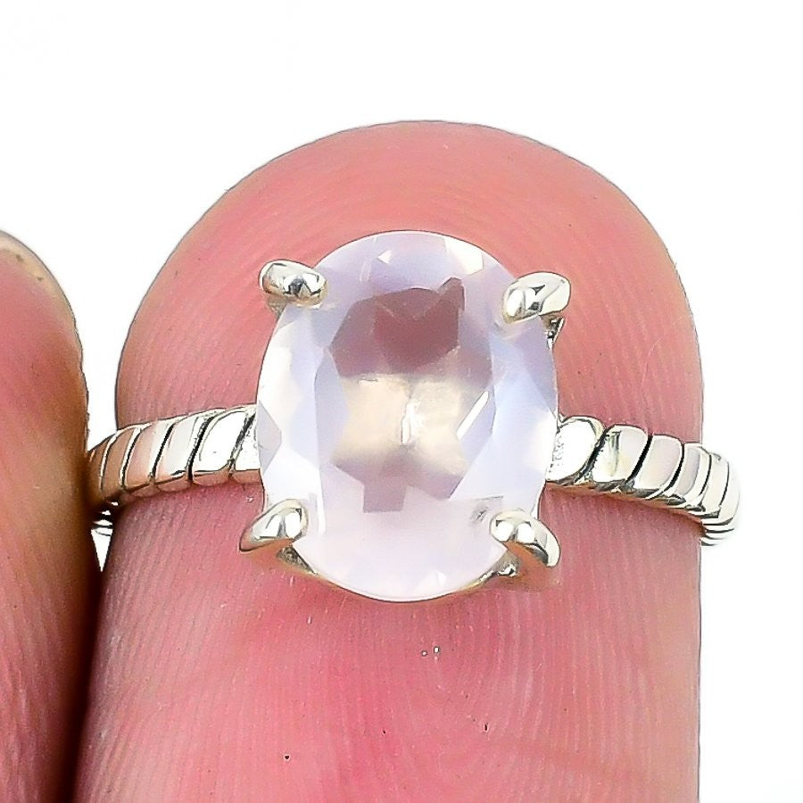 Rose Quartz Gemstone Solid Silver Daughter Statement Heart Chakra Ring Size 6