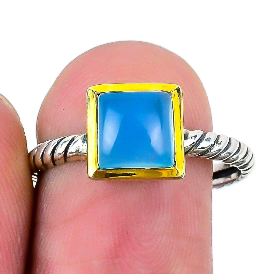 Aqua Chalcedony Stone 925�Solid�Silver Wife Statement Friend Gift Ring Jewelry