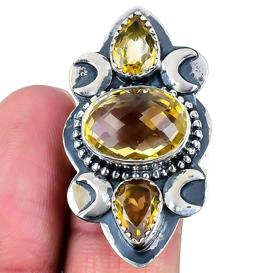 Natural Citrine Statement Friendship Day Ring Jewelry Size 10.5 925�Solid�Silver