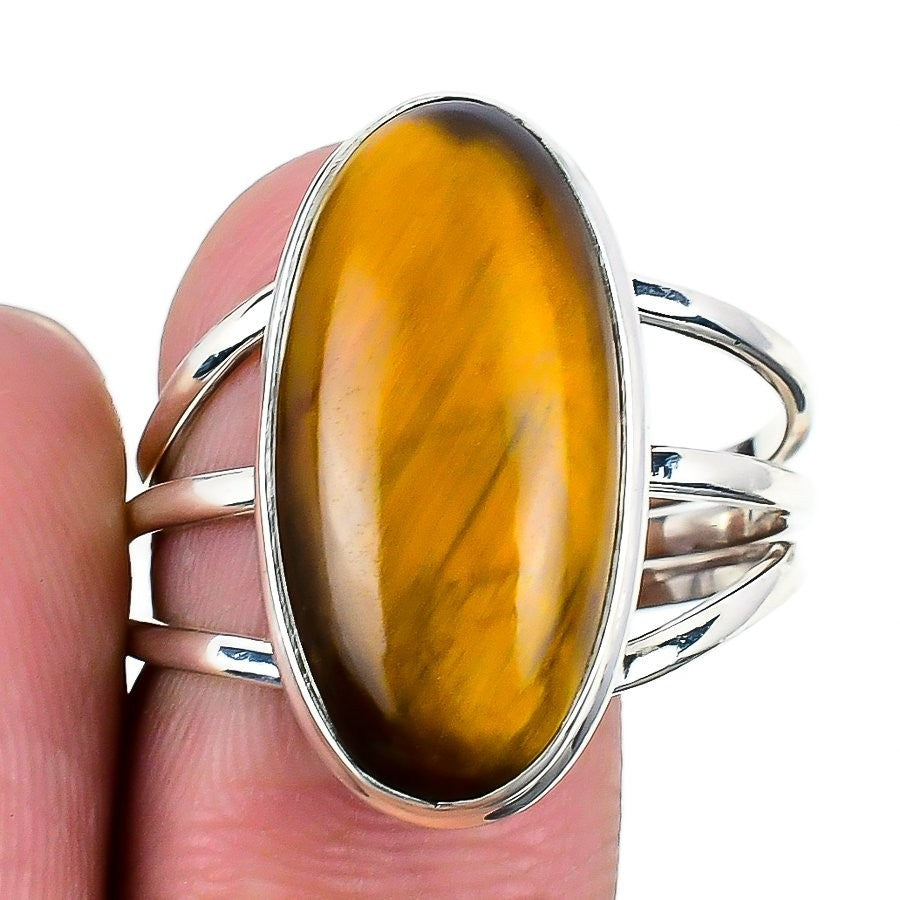 Natural Tiger Eye Sterling Silver Statement Friendship Day Ring Jewelry US 13