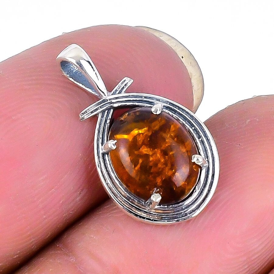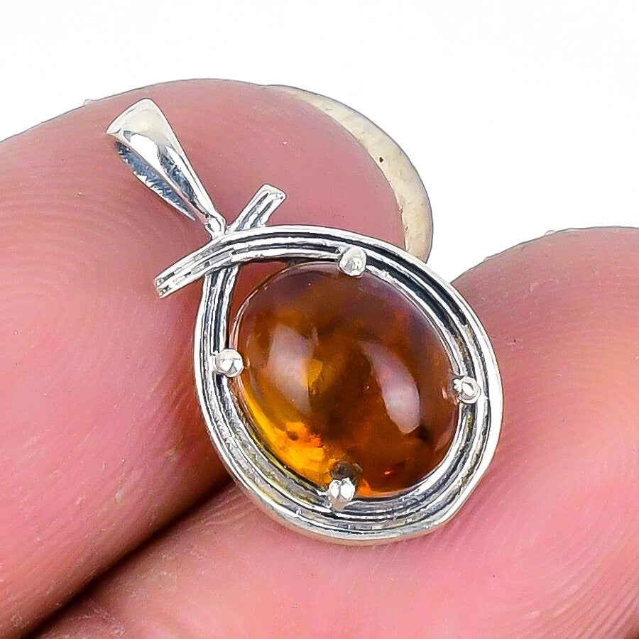 Sacral Chakra Baltic Amber Gemstone Solid Sterling Silver Unique Pendant Jewelry