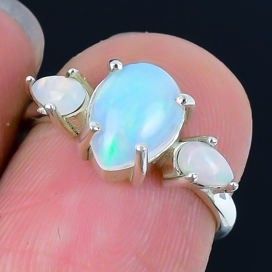 Ethiopian Opal Gemstone 925 Sterling Silver Wife Statement Wedding Ring Size 8.5