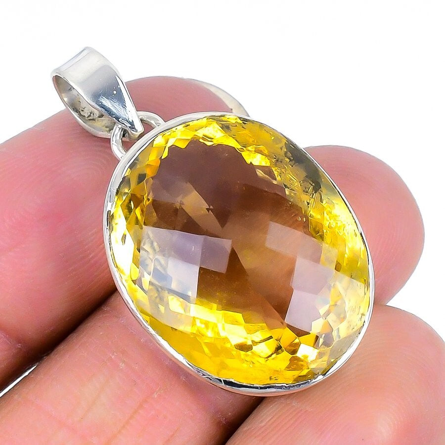 Citrine Faceted Stone 925 Sterling Silver Birthday Sister Boho Pendant Jewelry