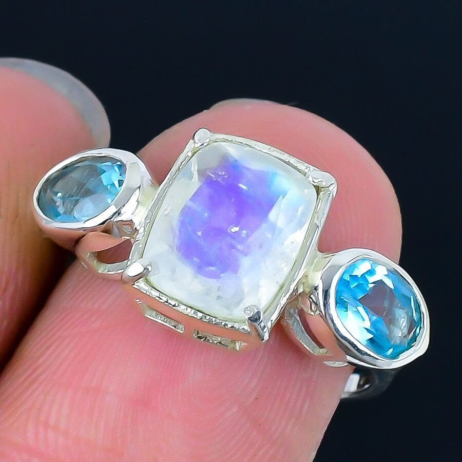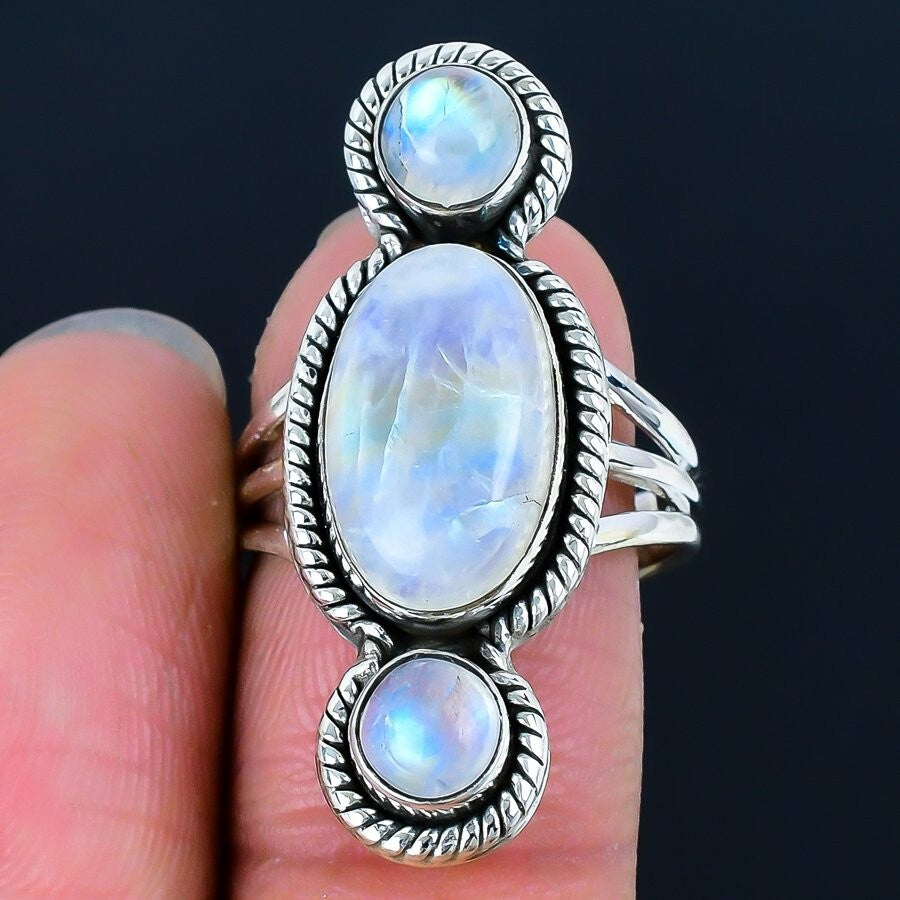 Rainbow Moonstone Stone Solid Sterling Silver Statement Boho Ring Jewelry Size 8