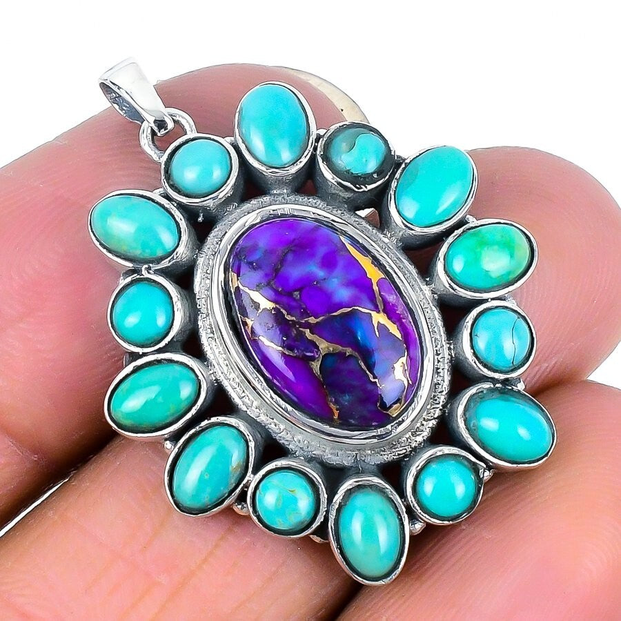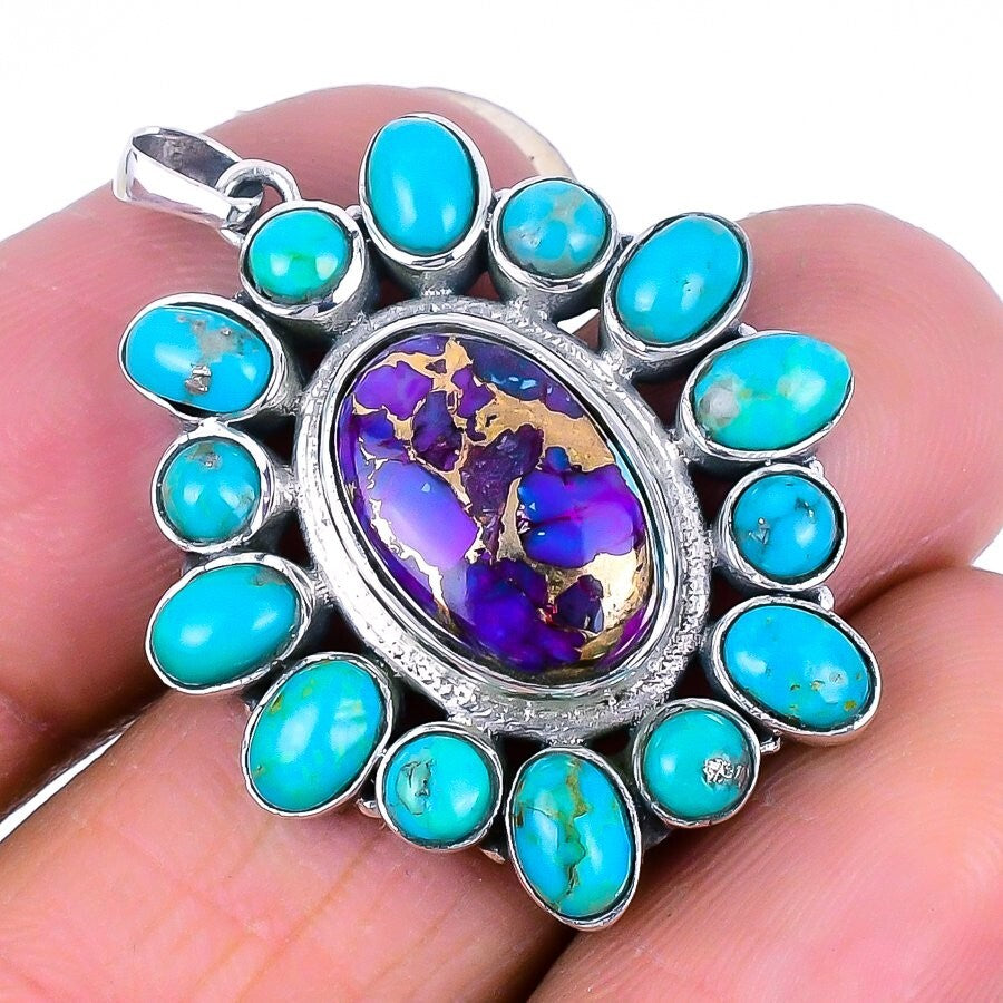 Copper Purple Turquoise Stone 925 Solid Silver Artisan Daughter Pendant Jewelry