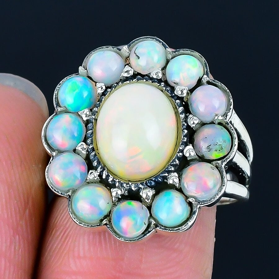 Ethiopian Opal Gemstone 925 Sterling Silver Wedding Statement Boho Ring Jewelry