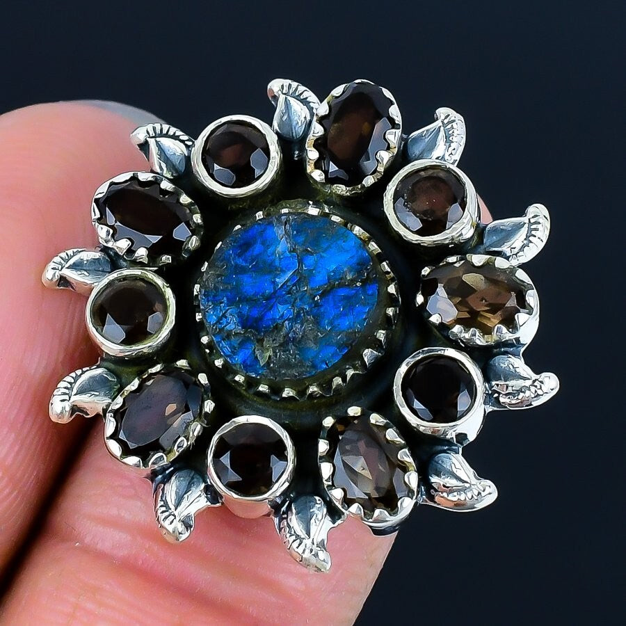Labradorite Stone Solid Sterling Silver Birthday Art Deco Statement Ring Jewelry