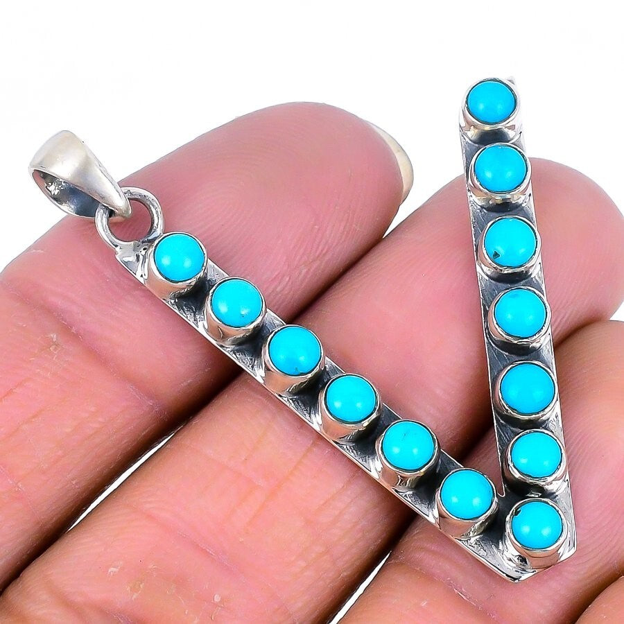 Arizona Turquoise V Stone Wedding Wife Birthday Pendant Solid Sterling Silver