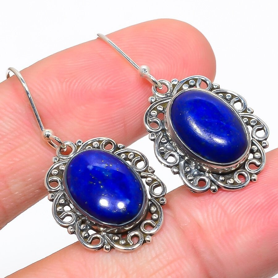Lapis Lazuli Stone Sterling Silver Dangling Handmade Anniversary Mother Earrings