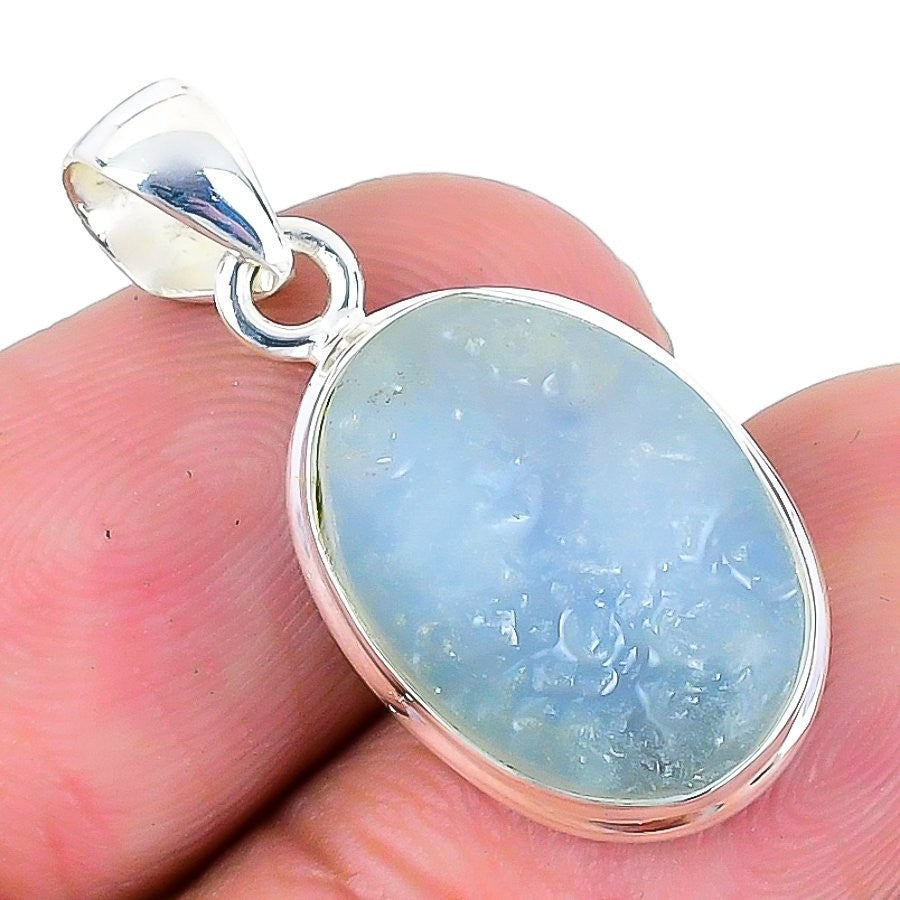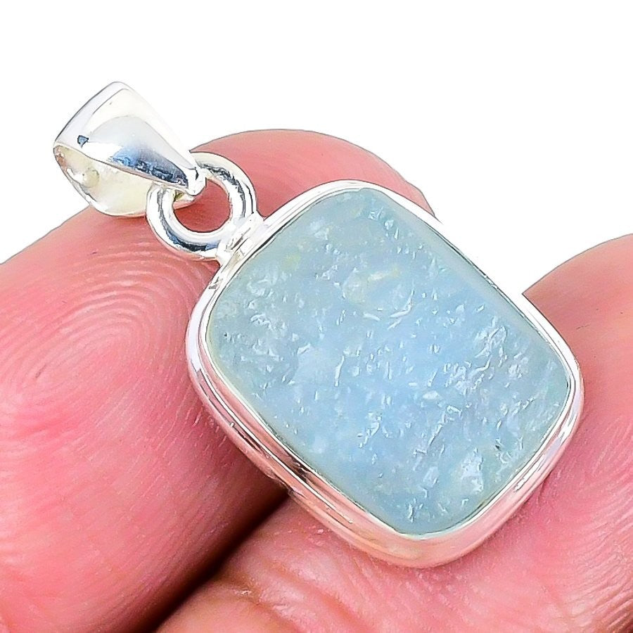 Aquamarine Drusy Gemstone March Wife Birthday Pendant Jewelry Sterling Silver