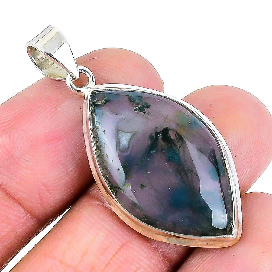 Sisters Day Sale Moss Agate Gemstone 925 Silver Boho Birthday Pendant Jewelry