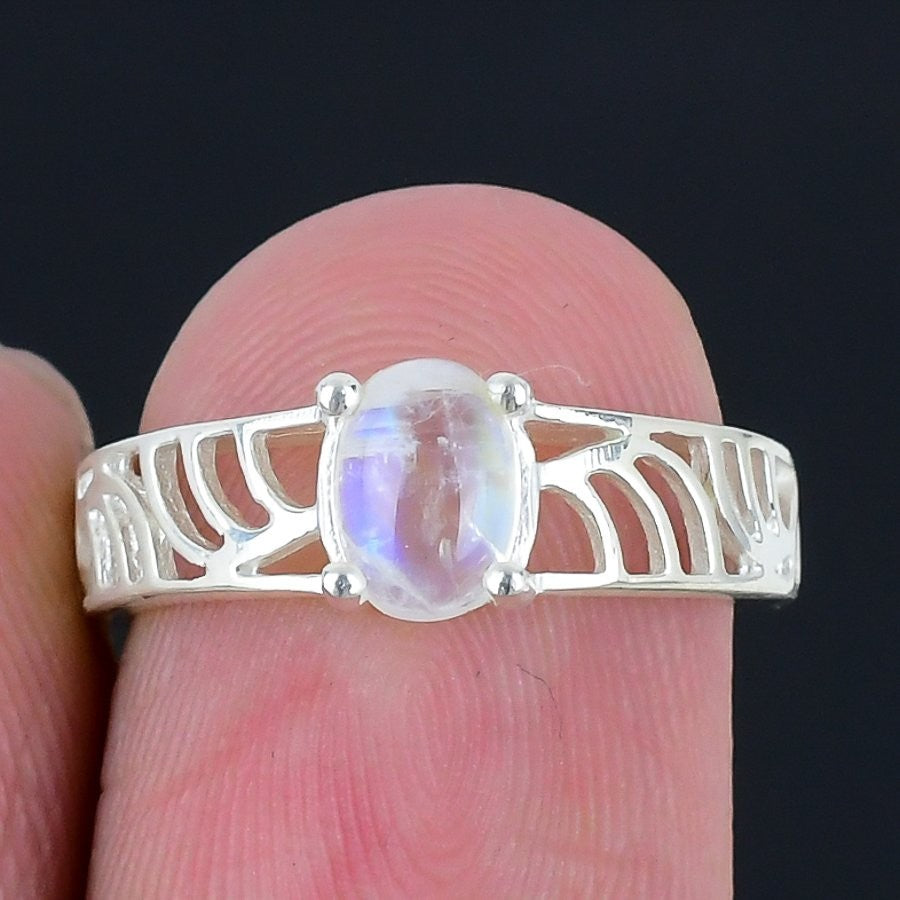 June Birth Moonstone Gemstone 925 Sterling Silver Unique Statement New Ring US 6