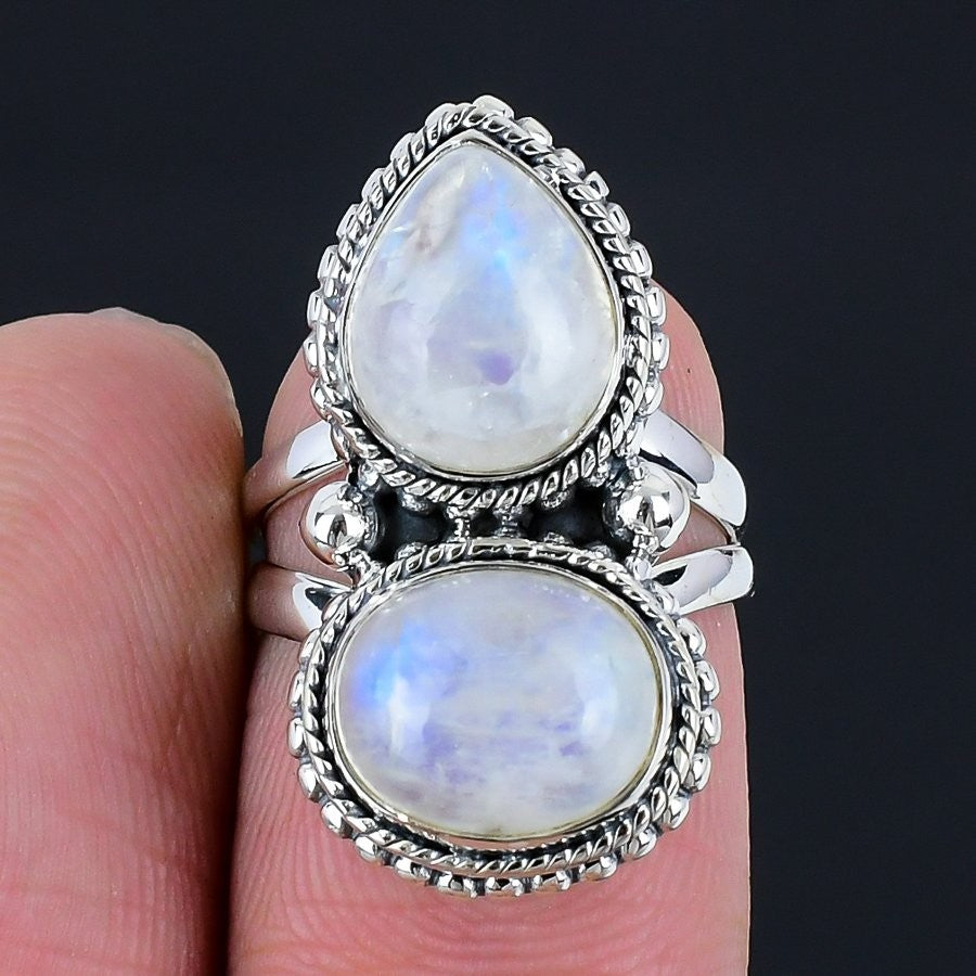 Moonstone Stone 925 Sterling Silver Trendy Statement Sister Ring Jewelry US 8
