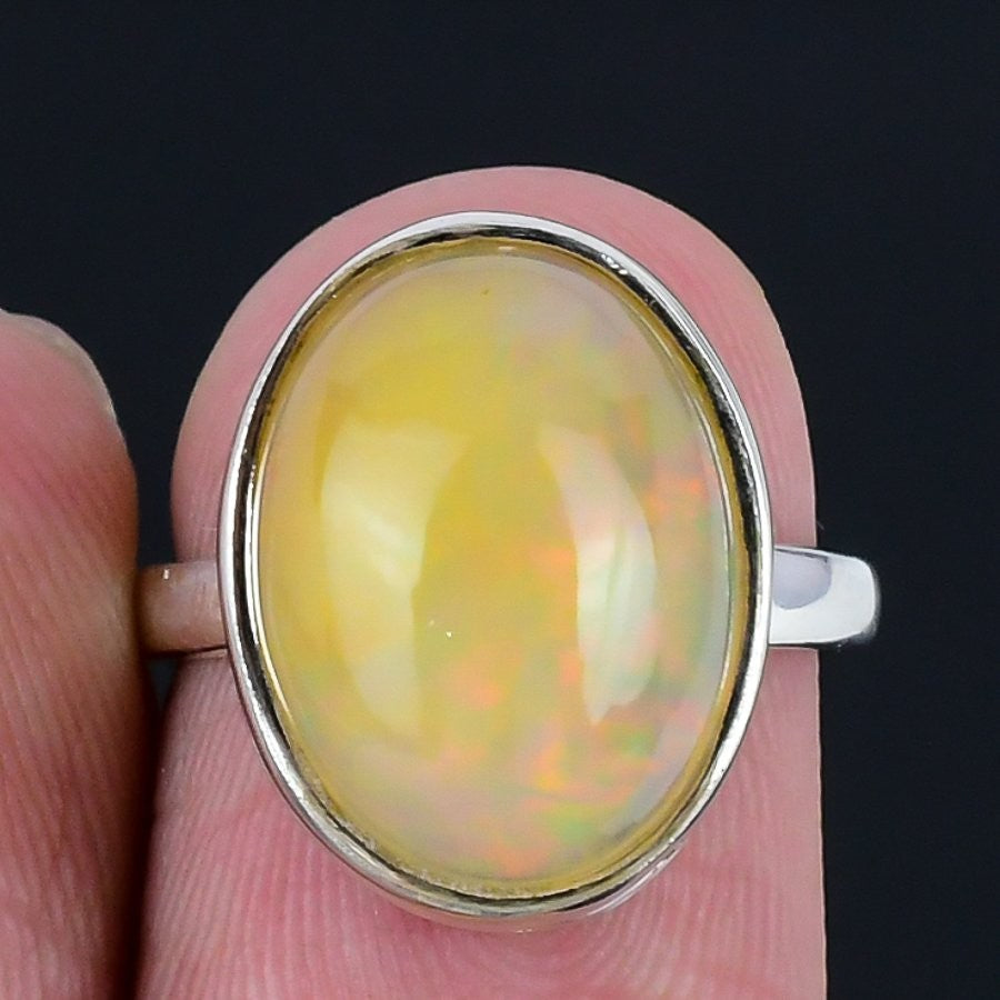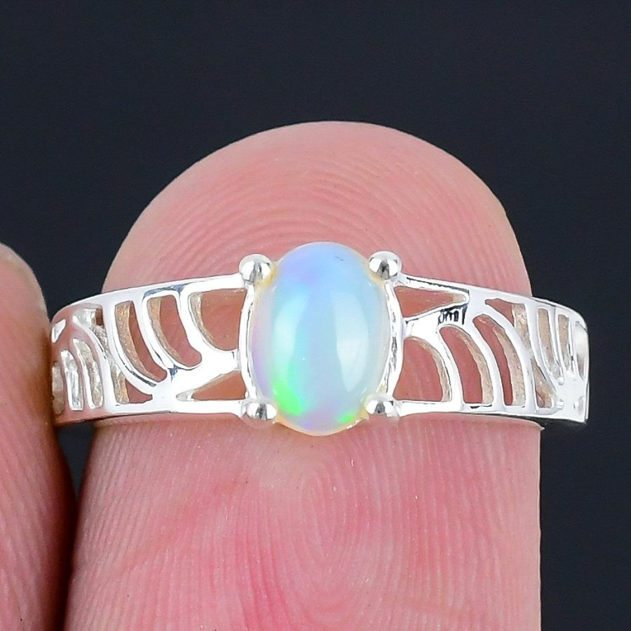 Ethiopian Opal Stone Solid Silver Wedding Statement Mother Anniversary Ring US 6