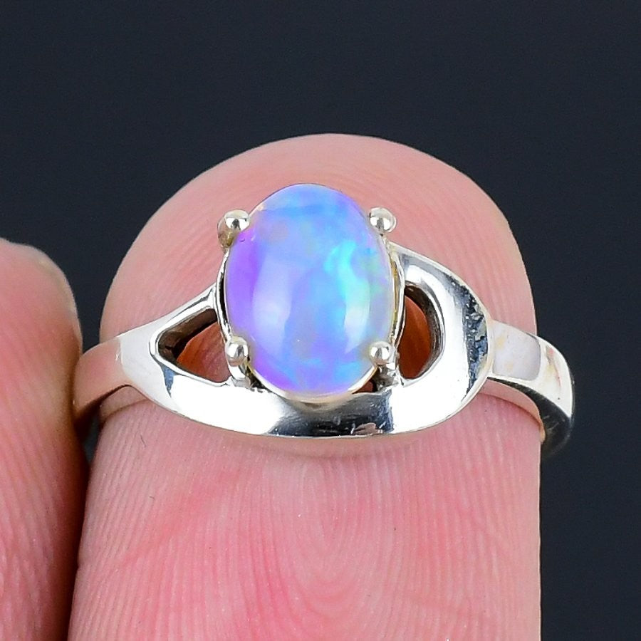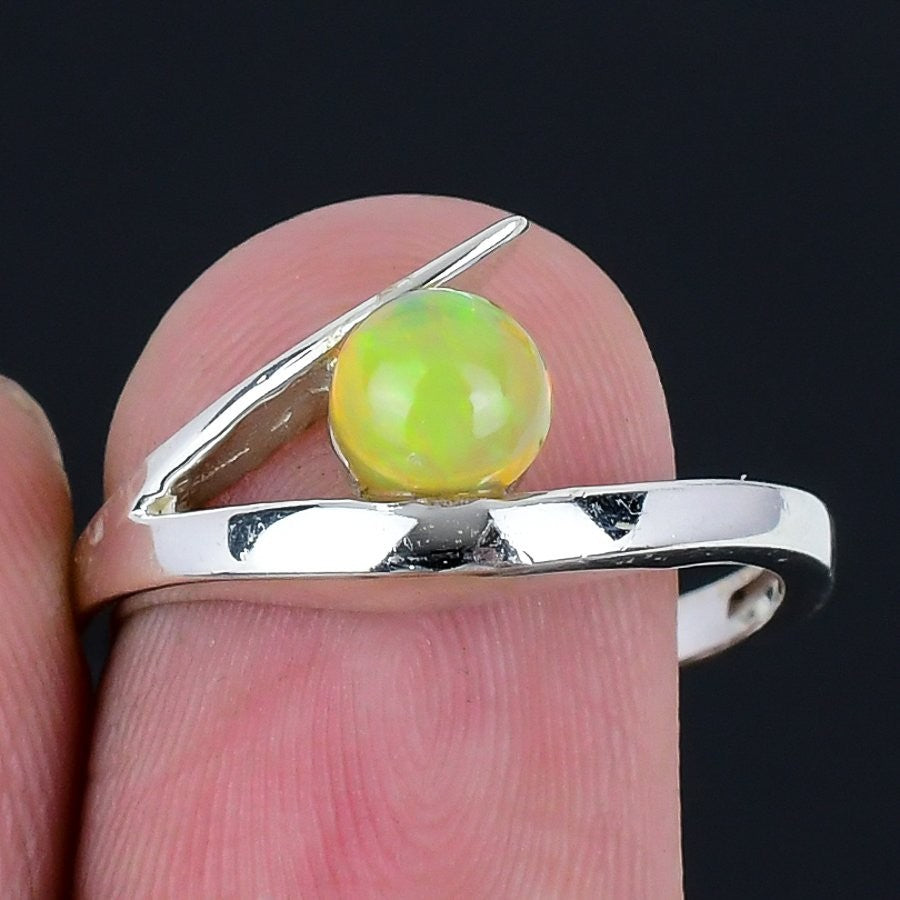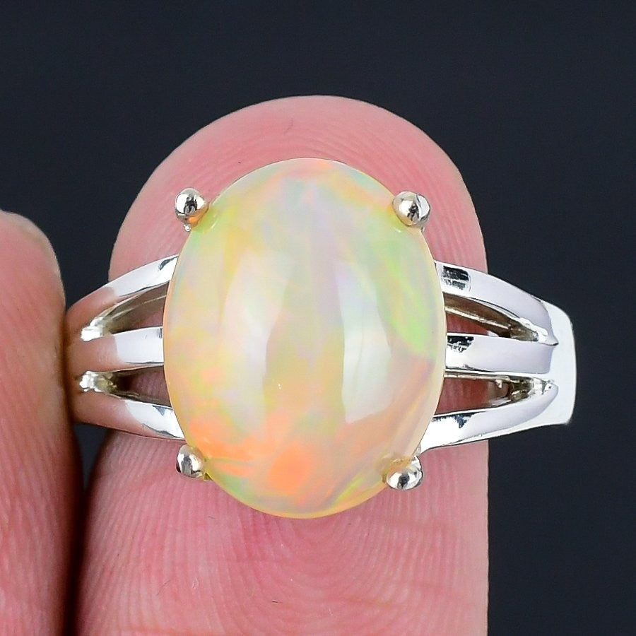 Natural Ethiopian Opal Statement Best Friend Gift Ring Jewelry Solid Silver US 8