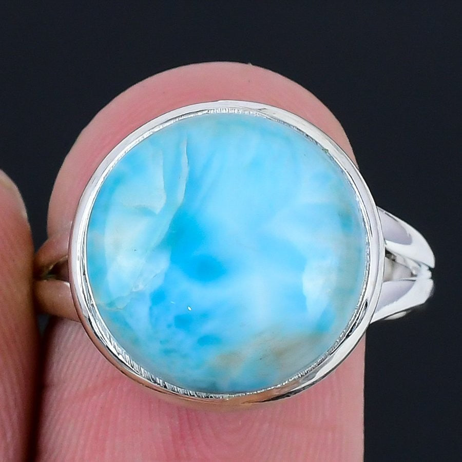 Republic Larimar Stone 925�Solid�Silver Daughter Statement Ring Jewelry US 8.5