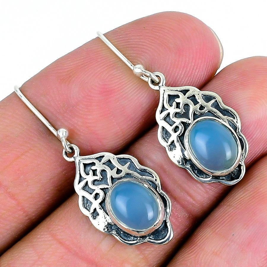 Aqua Chalcedony Gemstone Solid Silver Anniversary Wife Dangling Wedding Earrings