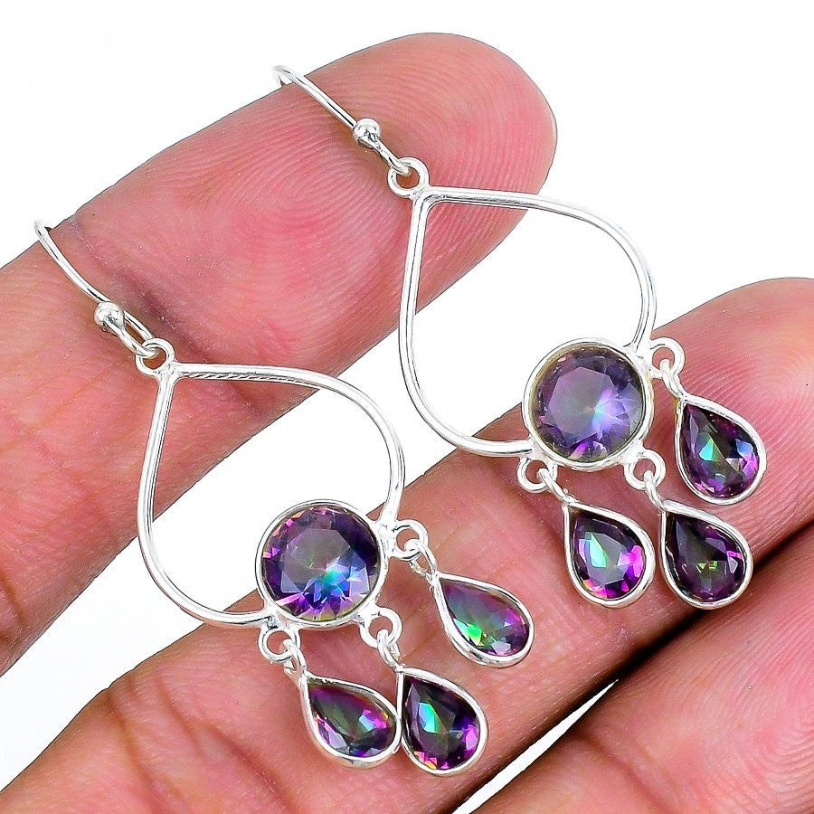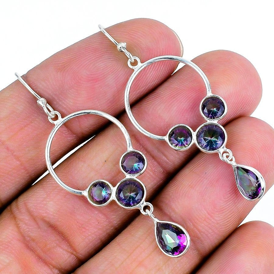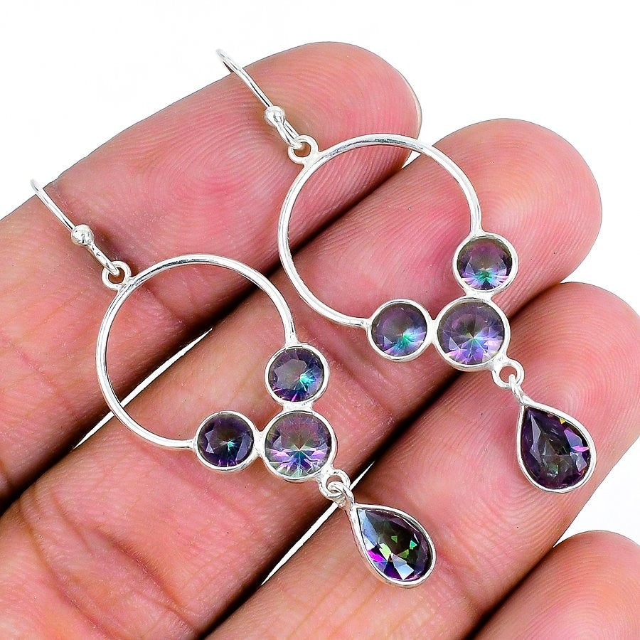 Mystic Topaz Stone Hook Mother New Drop Bezel Birthday Earrings Sterling Silver