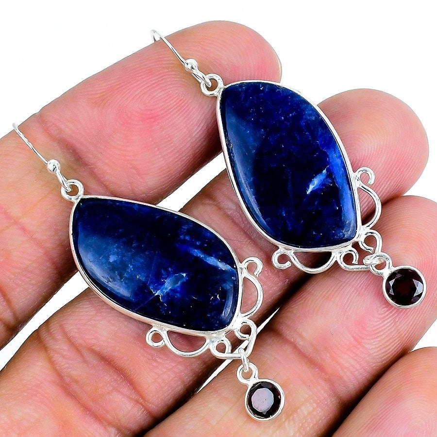 Sodalite Stone 925�Solid�Silver Hook Mother Boho Dangle Drop Earrings Jewelry