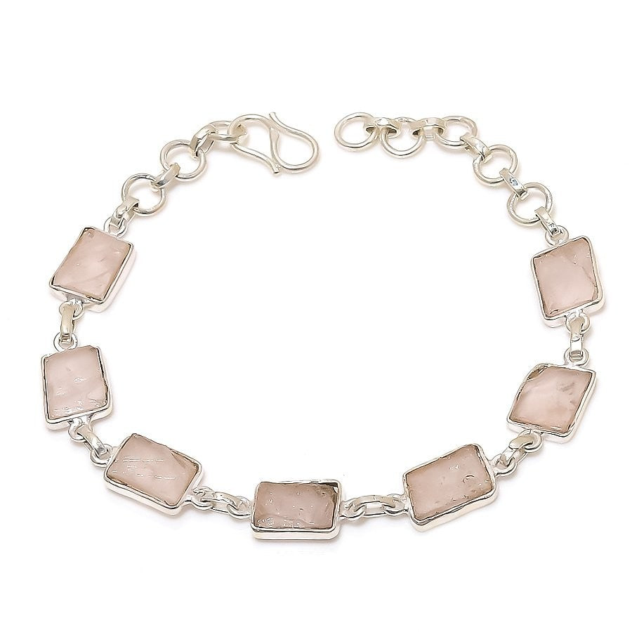 Natural Rose Quartz Solid Sterling Silver Daughter Chain Handcrafted Bracelet