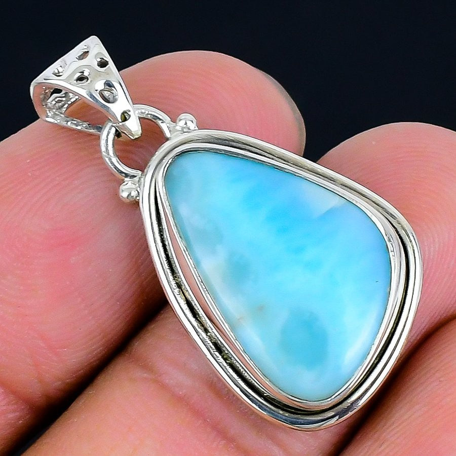 Republic Larimar Stone Anniversary Trendy Art Deco Pendant Solid Sterling Silver