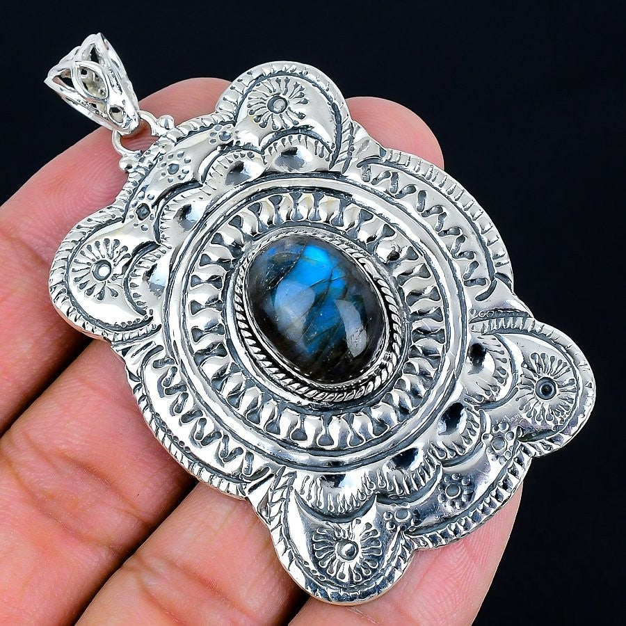 Labradorite Stone 925�Solid�Silver Best Friend Gift Bezel Mother Pendant Jewelry