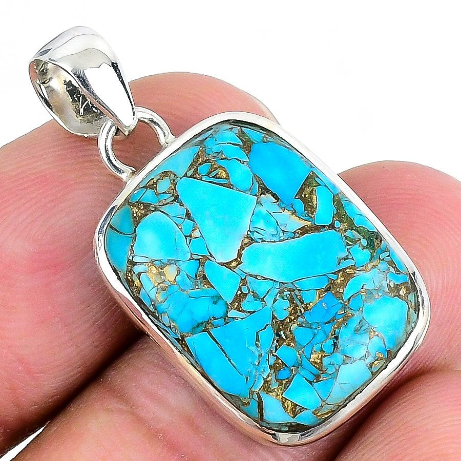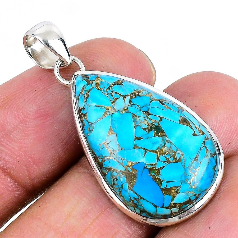 Natural Copper Blue Turquoise Solid Sterling Silver Daughter Wedding New Pendant