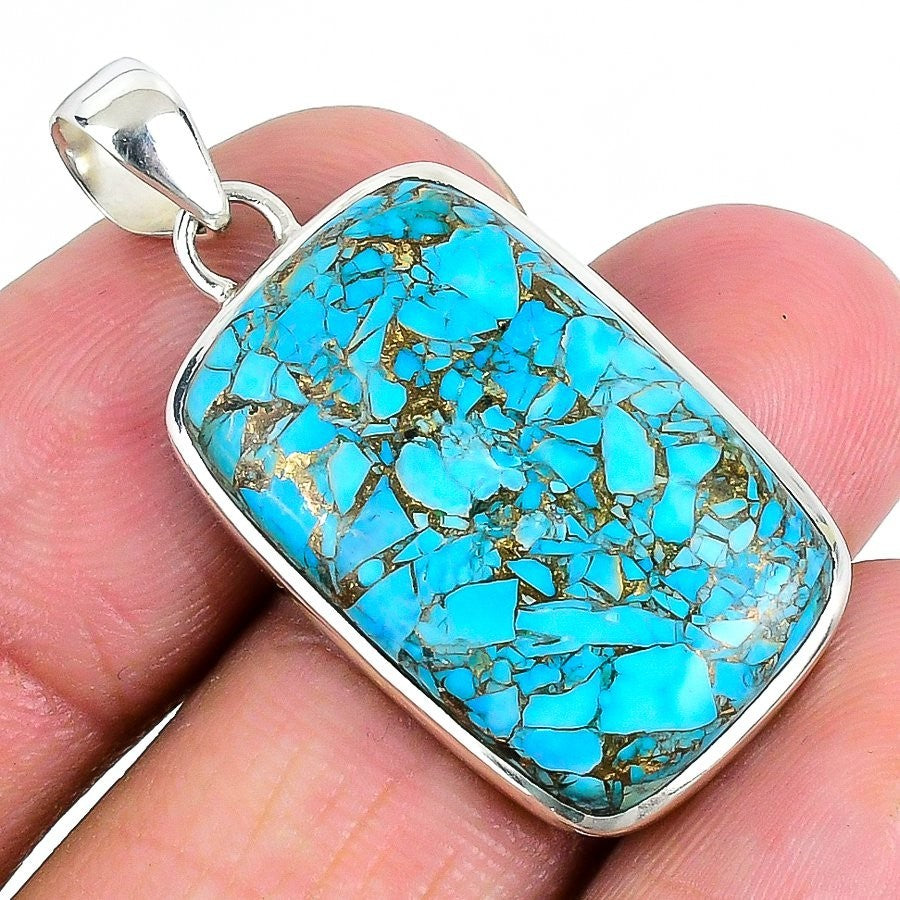 Throat Chakra Copper Blue Turquoise Gemstone 925�Solid�Silver Pendant Jewelry