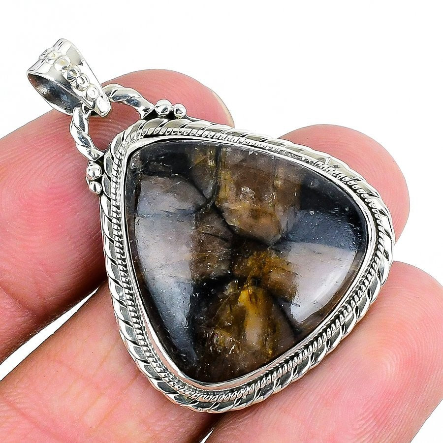 Chiastolite Gemstone 925�Solid�Silver Bezel Birthday Anniversary Pendant Jewelry
