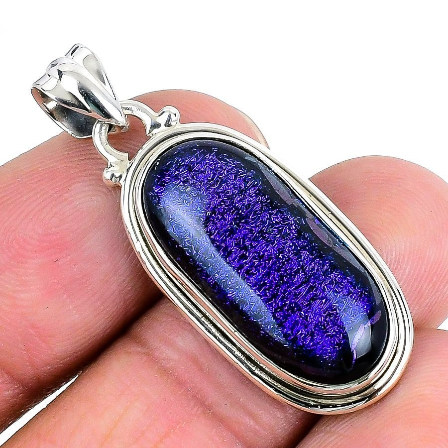 Mexican Dico Glass Gemstone 925 Silver Sister Wedding Bezel Engagement Pendant