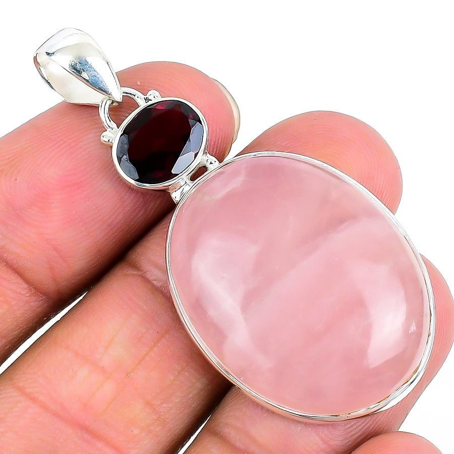 Heart Chakra Natural Rose Quartz 925 Silver Sisters Gift Ethnic Wedding Pendant