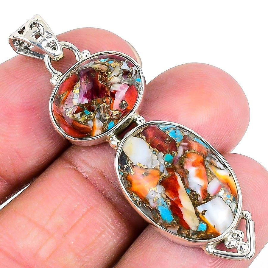 Spiny Oyster Turquoise Gemstone 925�Solid�Silver Art Deco Wife Pendant Jewelry
