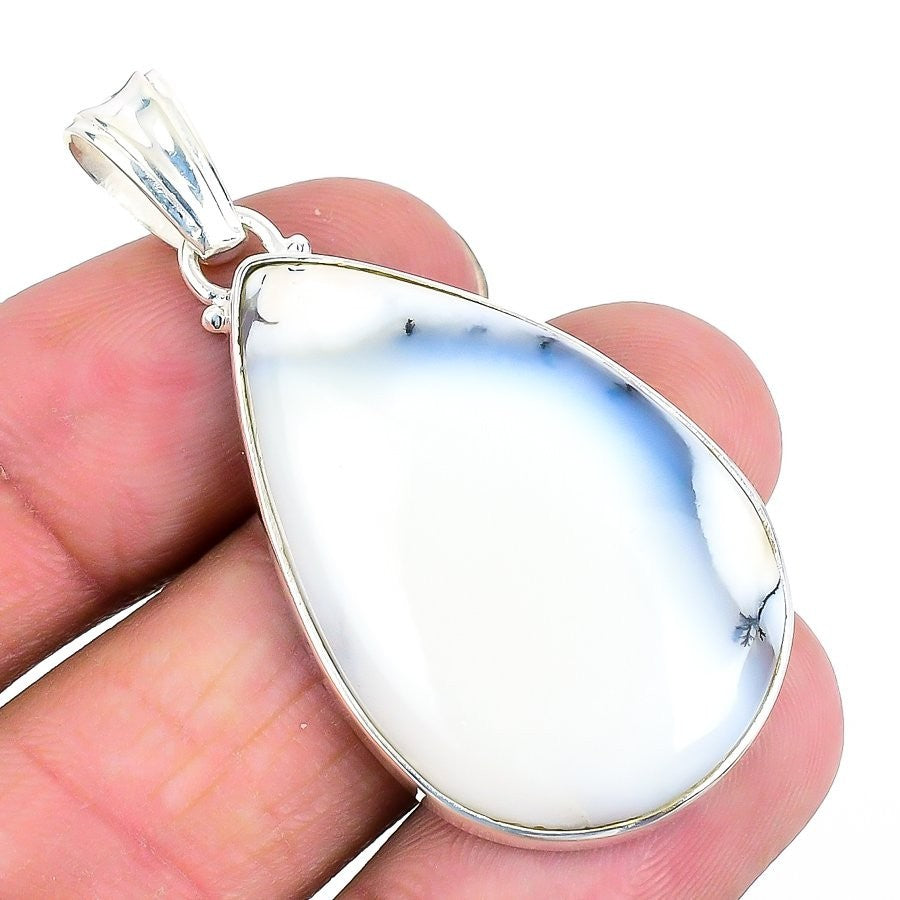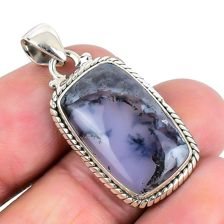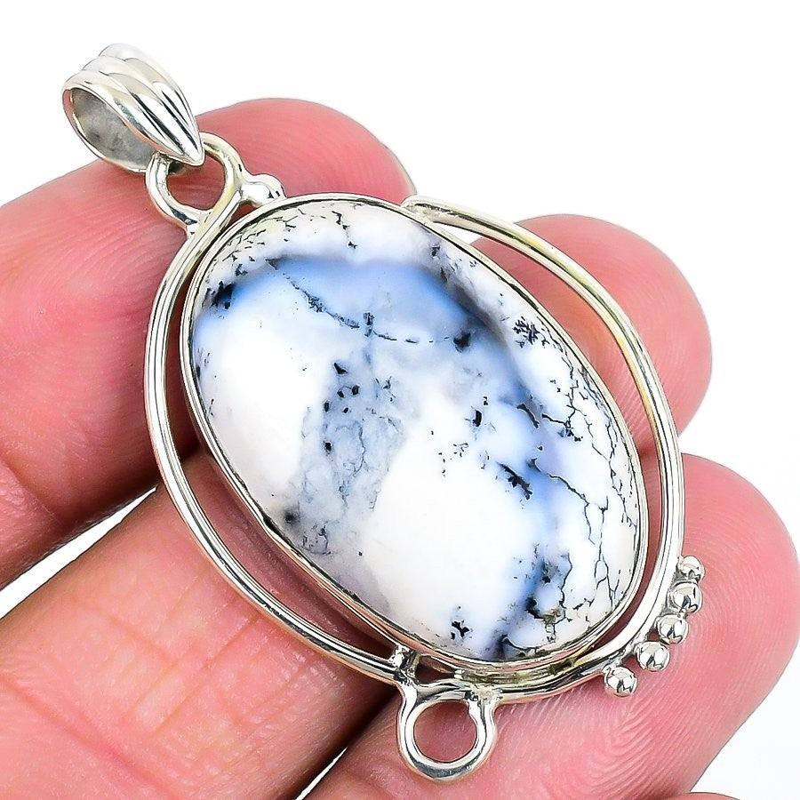 Dendrite Opal Stone Sterling Silver Unique Elegant Engagement Pendant Jewelry