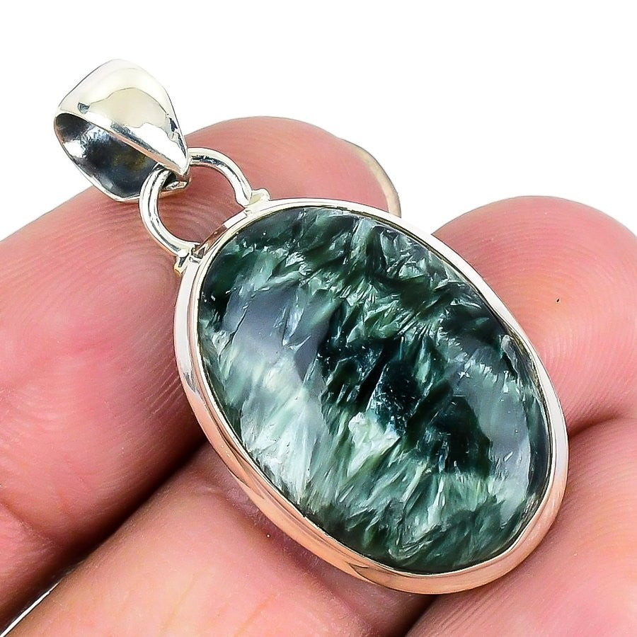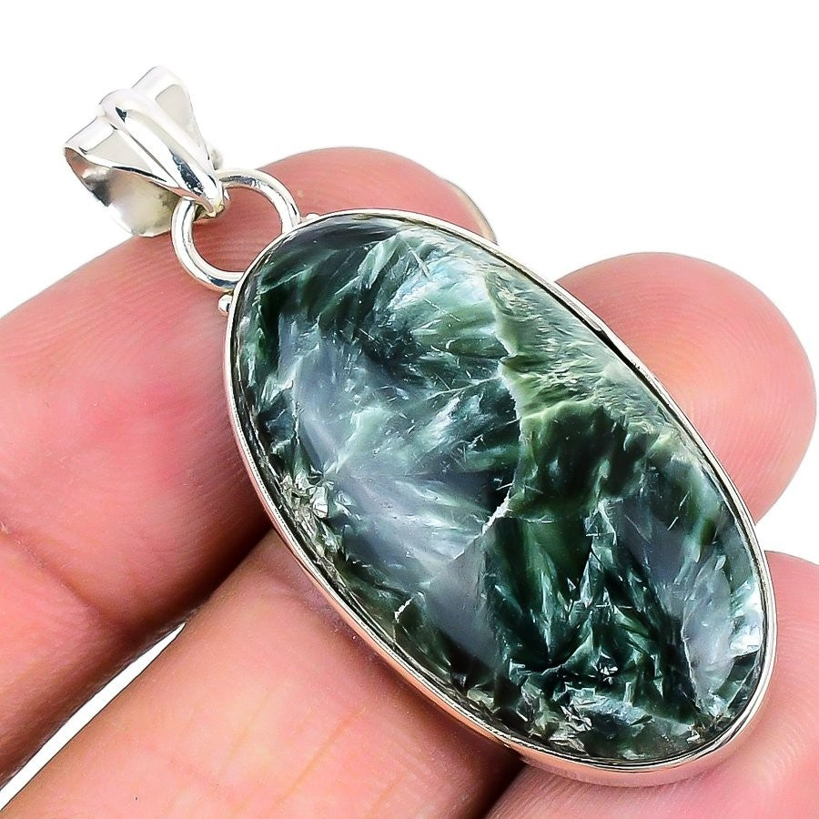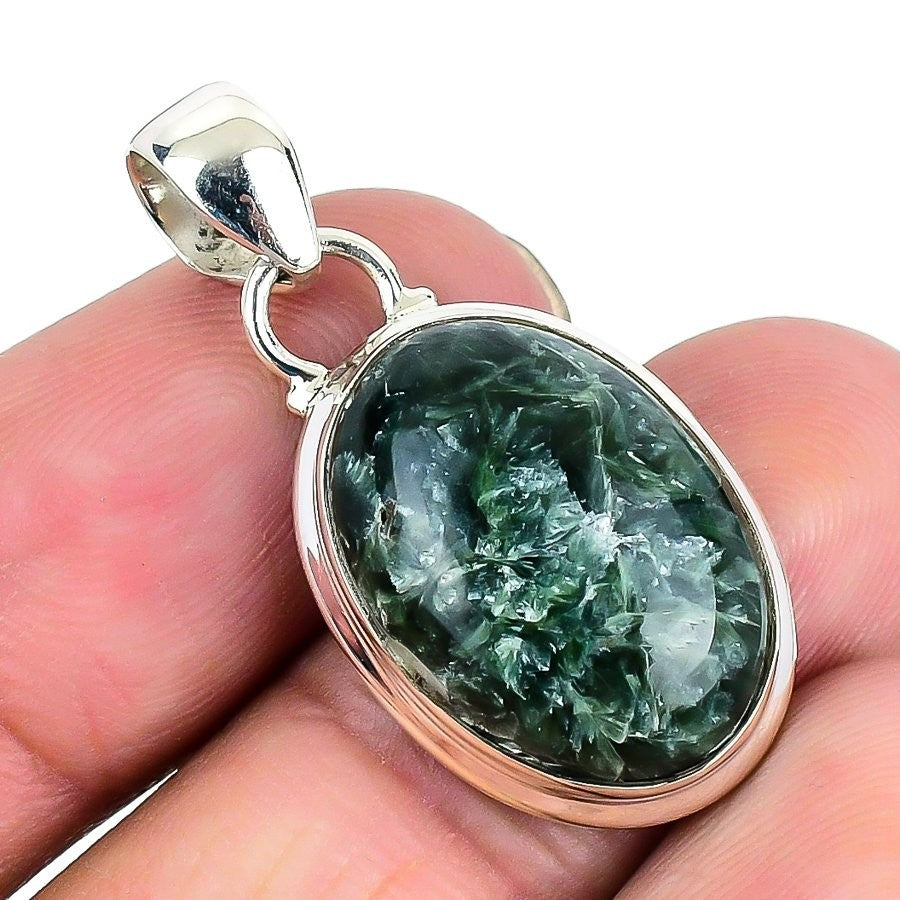 Natural Seraphinite Friend Gift Bezel Boho Pendant Jewelry Solid Sterling Silver