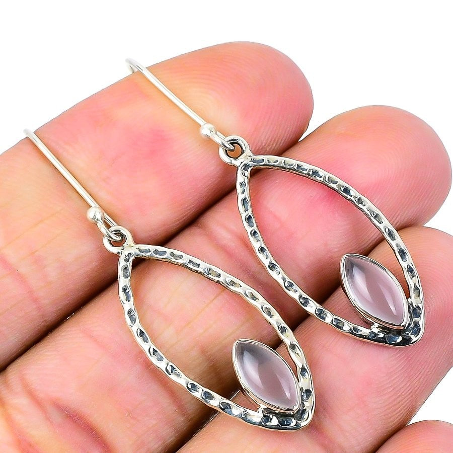 Natural Rose Quartz 925�Solid�Silver Mother Drop Heart Chakra Earrings Jewelry