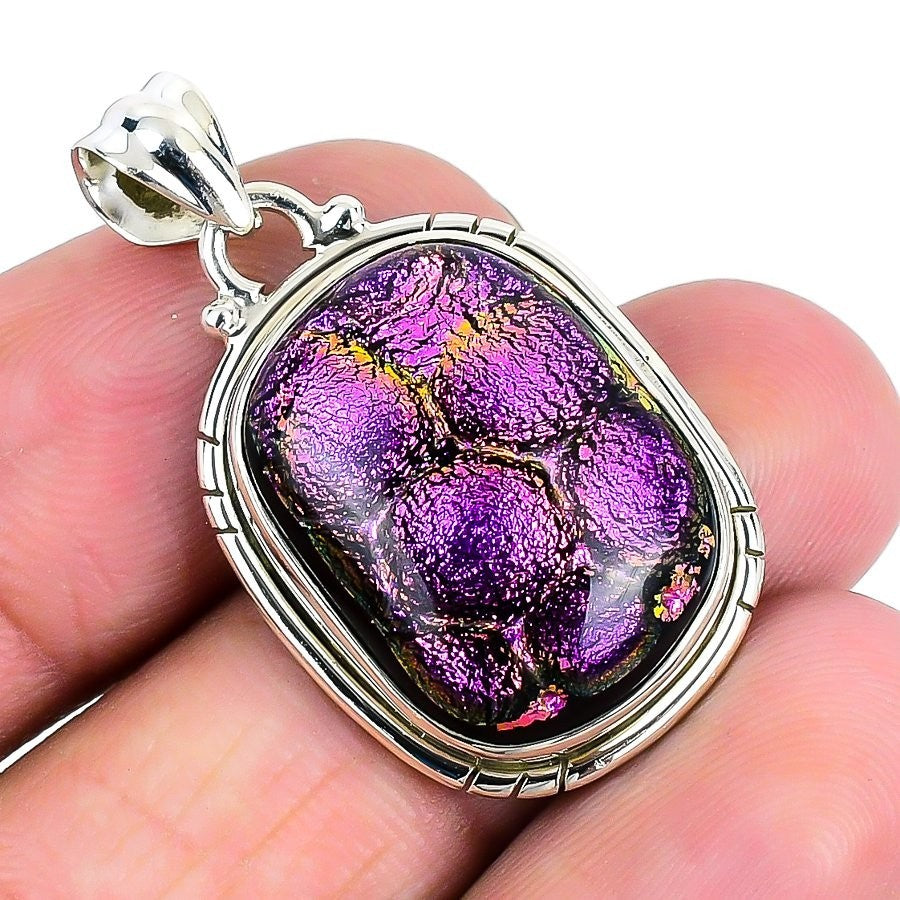 Mexican Dico Glass Gemstone 925 Silver Engagement Wife Bezel New Pendant Jewelry