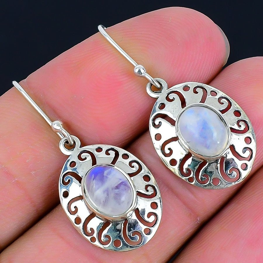 Natural Moonstone 925�Solid�Silver Hook Wedding Dangling Bezel Sister Earrings