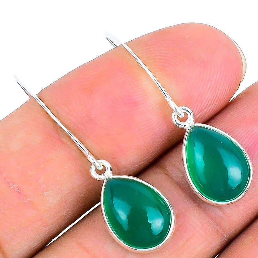 Green Onyx Gemstone Sterling Silver Bezel Drop Dangle Daughter Wedding Earrings