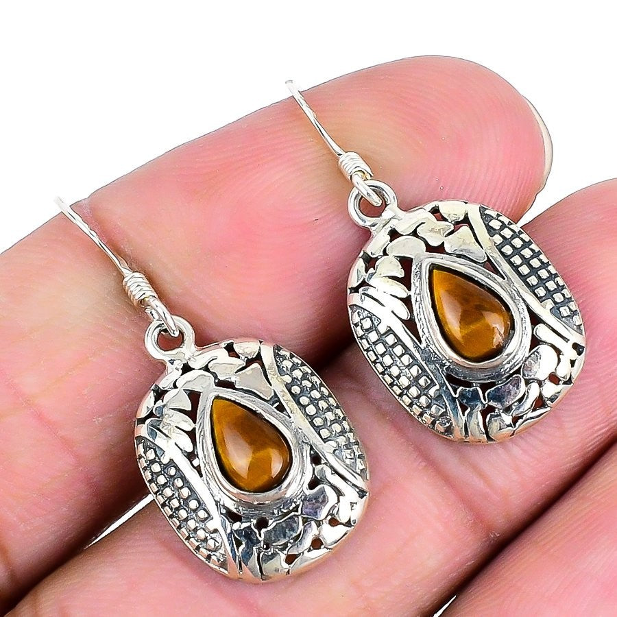 Tiger Eye Gemstone Sterling Silver Wife Drop Best Friend Gift Earrings Jewelry