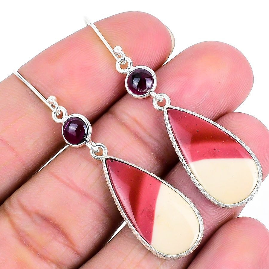 Natural Mookaite Solid Sterling Silver Bezel Drop Hook Wedding Earrings Jewelry