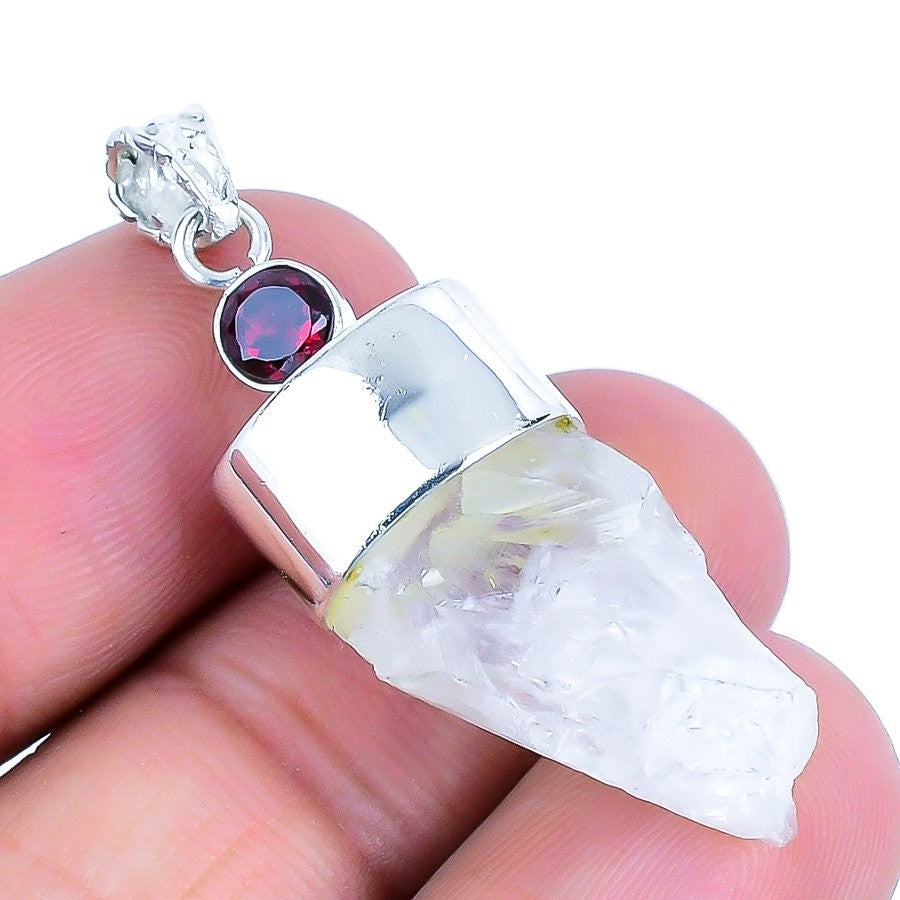 White Aura Crystal Stone Solid Silver Artisan Engagement Elegant Pendant Jewelry