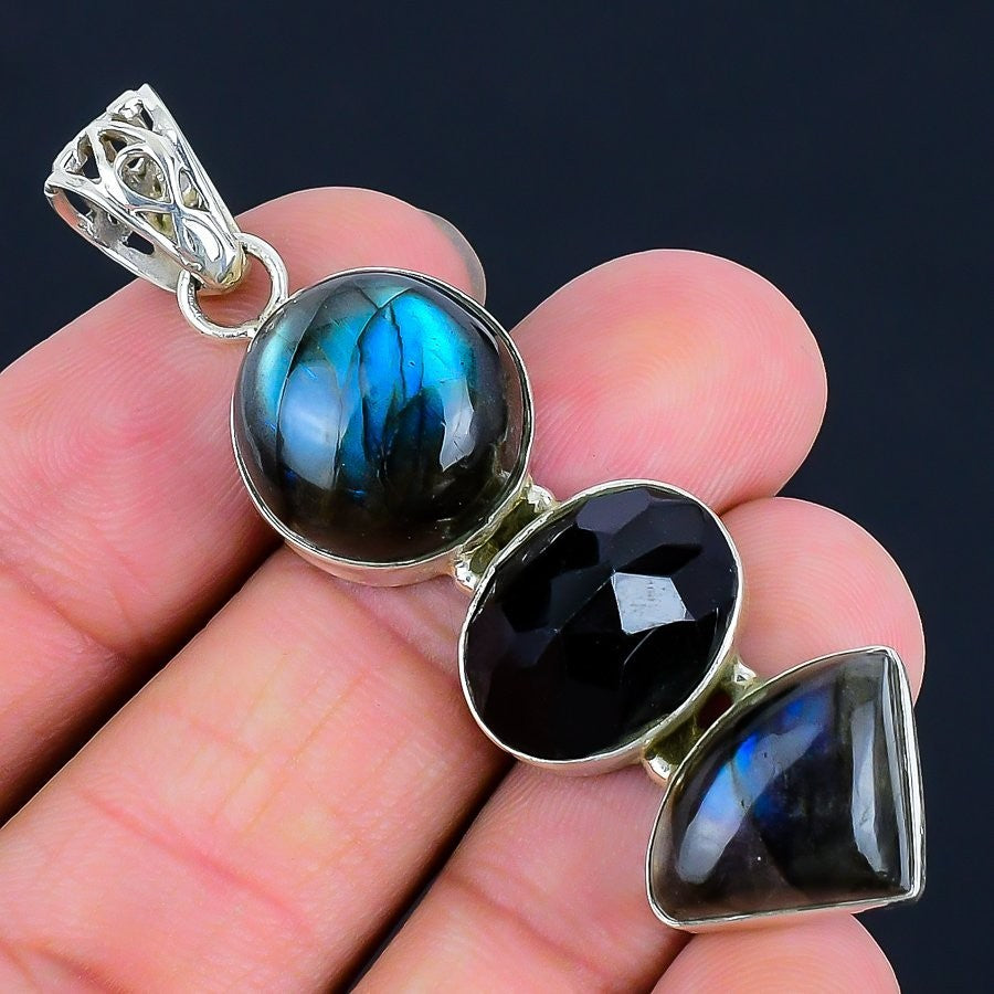 Labradorite Stone 925 Silver Friendship Day Boho Bezel Artisan Mother Pendant