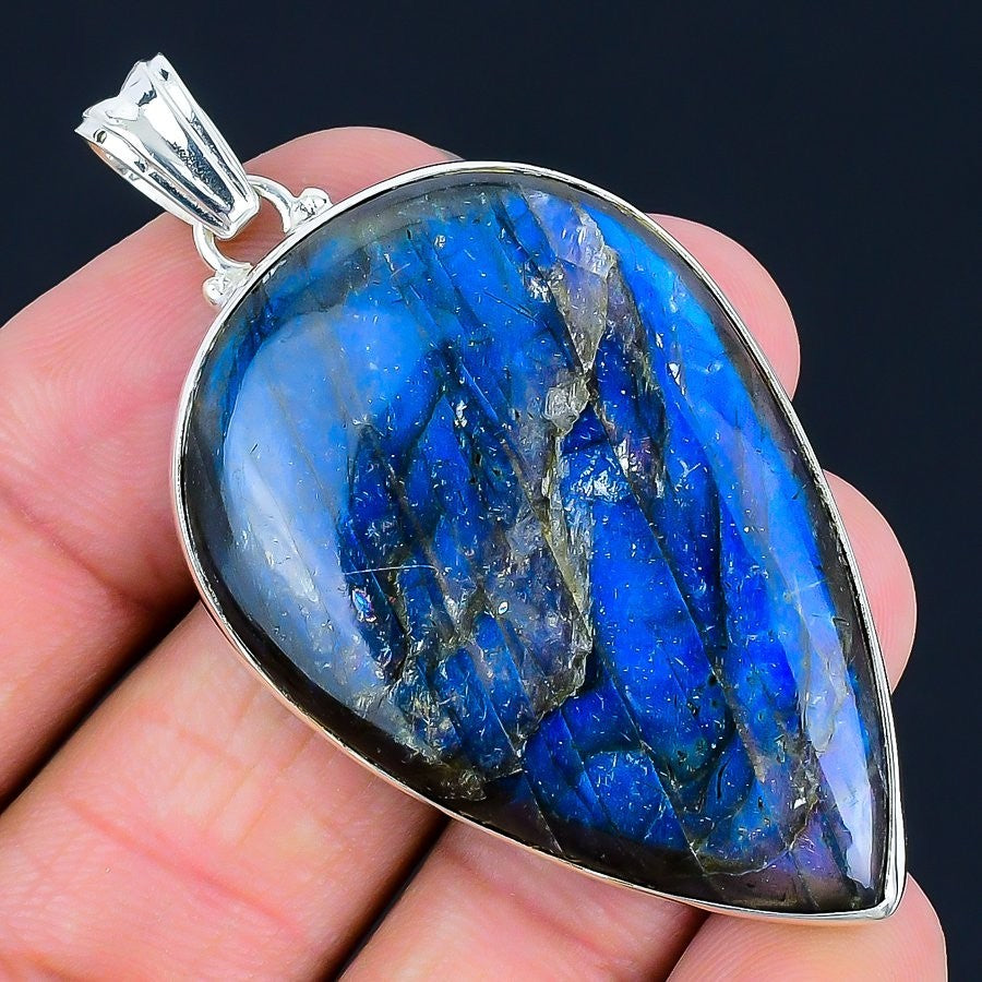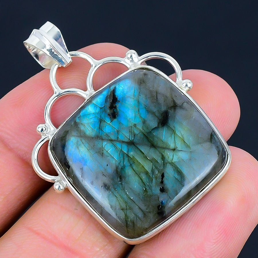 Labradorite Stone Birthday Mother Bezel Engagement Pendant Jewelry Solid Silver