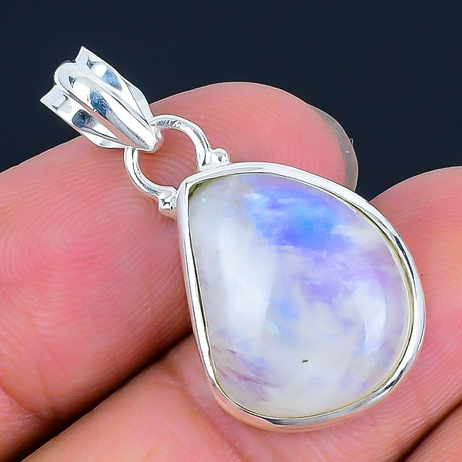 Moonstone Gemstone Birthday Trendy Elegant Bezel Sisters Gift Pendant 925 Silver