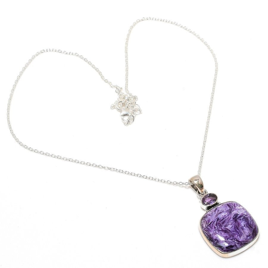 Russian Charoite Stone Chain Handcrafted Sisters Day Necklace 925�Solid�Silver