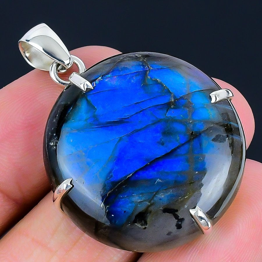Third Eye Chakra Labradorite Gemstone Wife Bezel Pendant Solid Sterling Silver